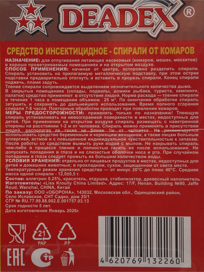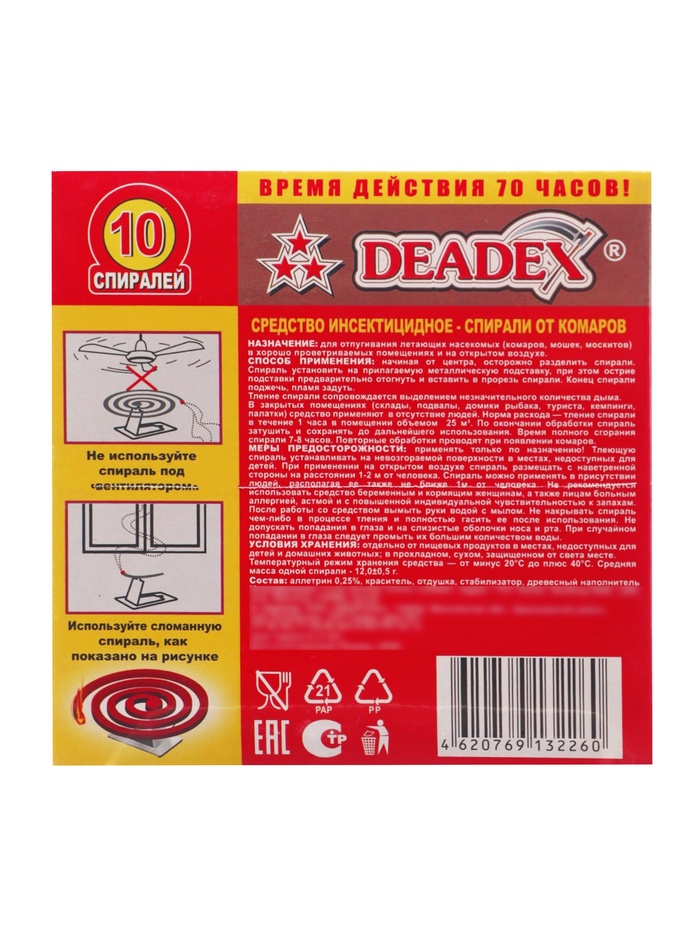 Спирали от комаров "DEADEX", красные, 10 шт