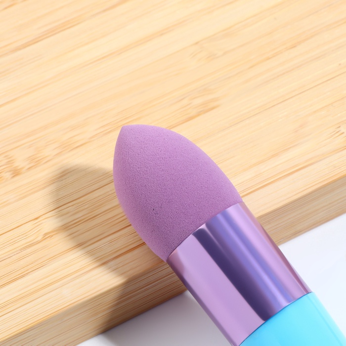 Спонж для макияжа с ручкой «Капля», 10 × 2,5 см, цвет голубой/фиолетовый