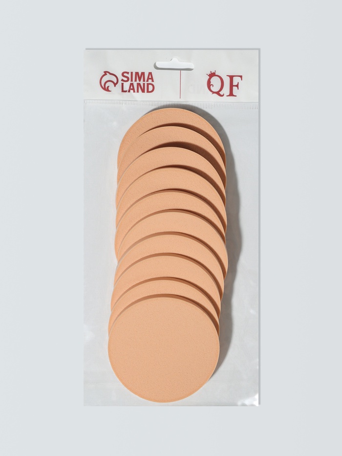 Набор из десяти круглых бежевых спонжей из латекса предназначен для равномерного нанесения и растушёвки косметики. Их универсальная форма и мягкая текстура обеспечивают аккуратное распределение тональных средств, пудры и других продуктов для макияжа.