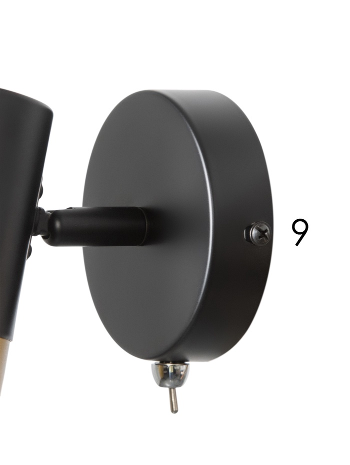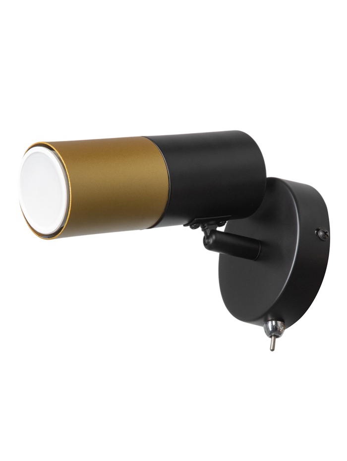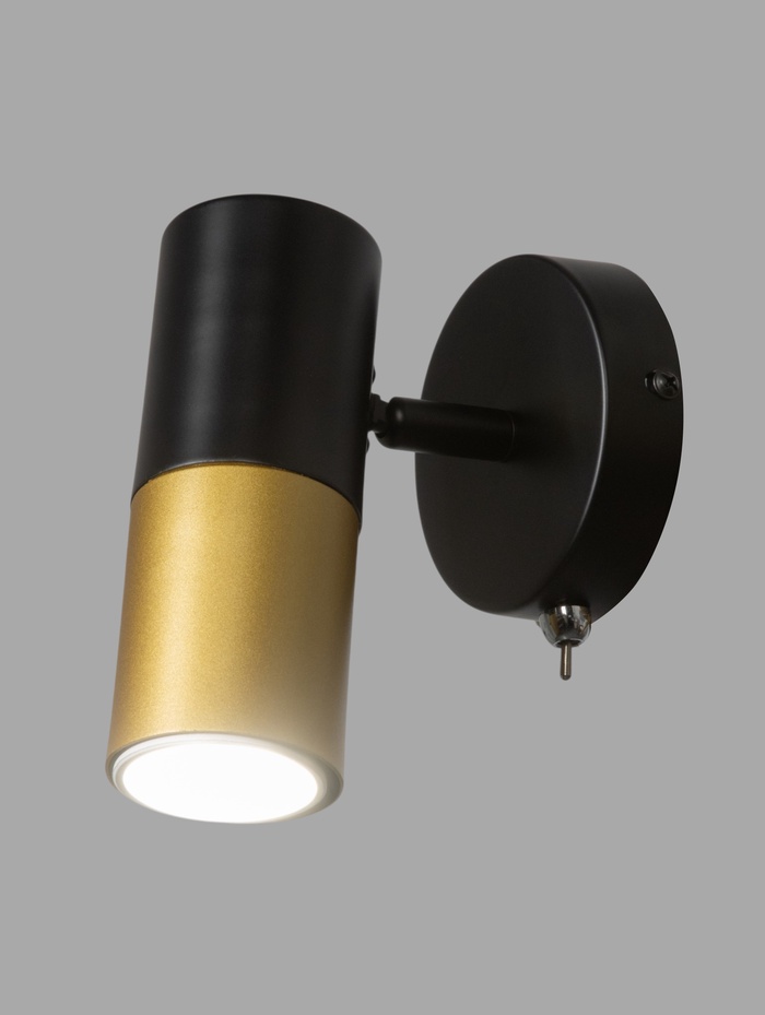 Контрастное сочетание чёрного и золотого цвета формирует выразительный современный образ. Светильник выглядит лаконично, но при этом добавляет интерьеру глубину и визуальный акцент.