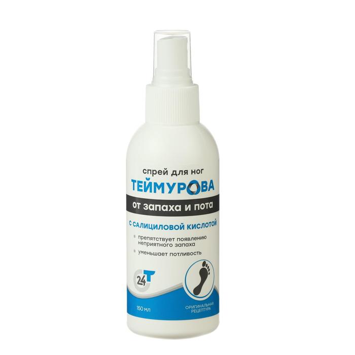 Спрей для ног «Теймурова» с салициловой кислотой – отличное решение для заботы о ваших ножках. Благодаря антибактериальным компонентам, средство эффективно устраняет избыточную потливость ног и препятствует появлению неприятного запаха. Перечная мята и ментол оказывают охлаждающий и дезодорирующий эффект. Рекомендован для использования в качестве средства гигиены перед посещение спортзалов, саун и так далее.