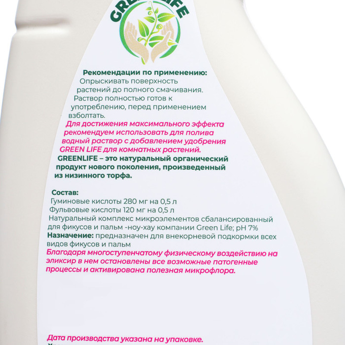 ""Green Life"" - это органический спрей, разработанный специально для ухода за фикусами и пальмами.