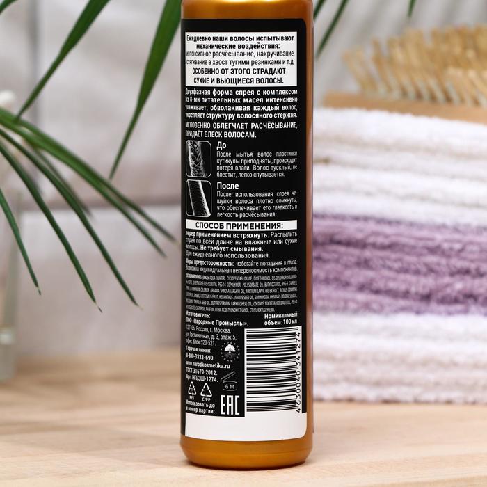 Спрей с комплексом из 8 питательных масел создан специально для восстановления сухих и очень сухих волос. Двухфазное средство обволакивает каждый волос невидимой защитной плёнкой, которая оберегает его от повреждений. Не оставляет после применения жирной и липкой плёнки, не утяжеляет волосы.