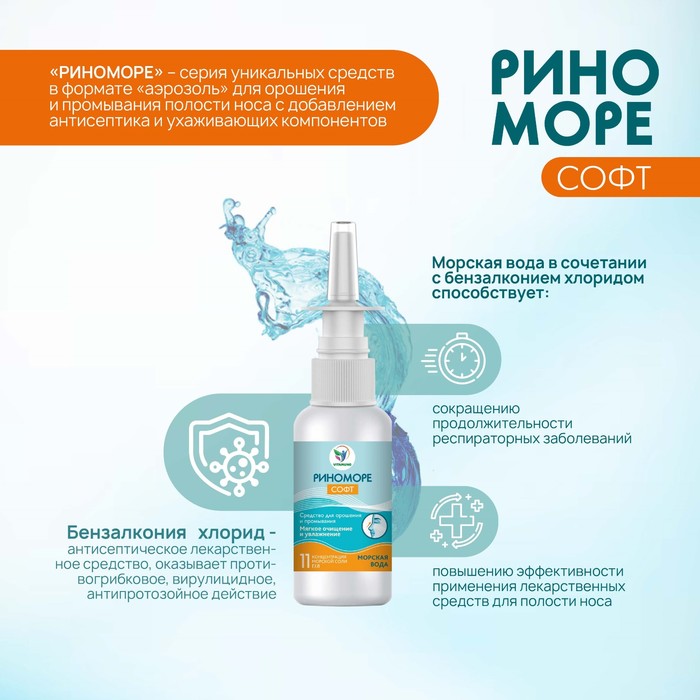 Комплекс активных компонентов, входящих в состав средства, способствует гигиеническому очищению, увлажнению слизистых оболочек при раздражении и сухости, в том числе в условиях чрезмерно сухого воздуха.