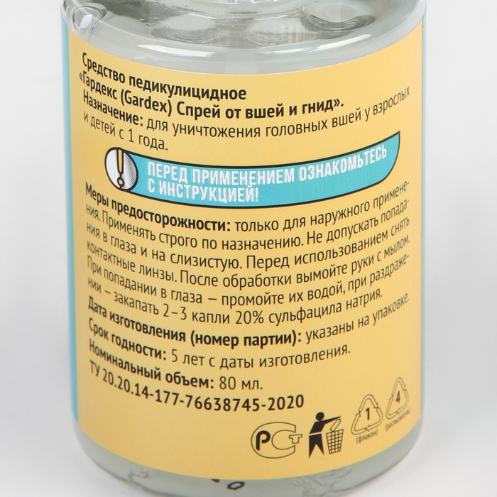 Спрей от вшей и гнид Gardex оказывает губительное действие на вшей и гнид. После нанесения спрея на кожу и волосы начинает работать входящий в состав диметикон, который известен своими обволакивающими свойствами.