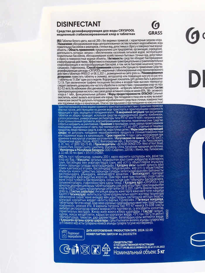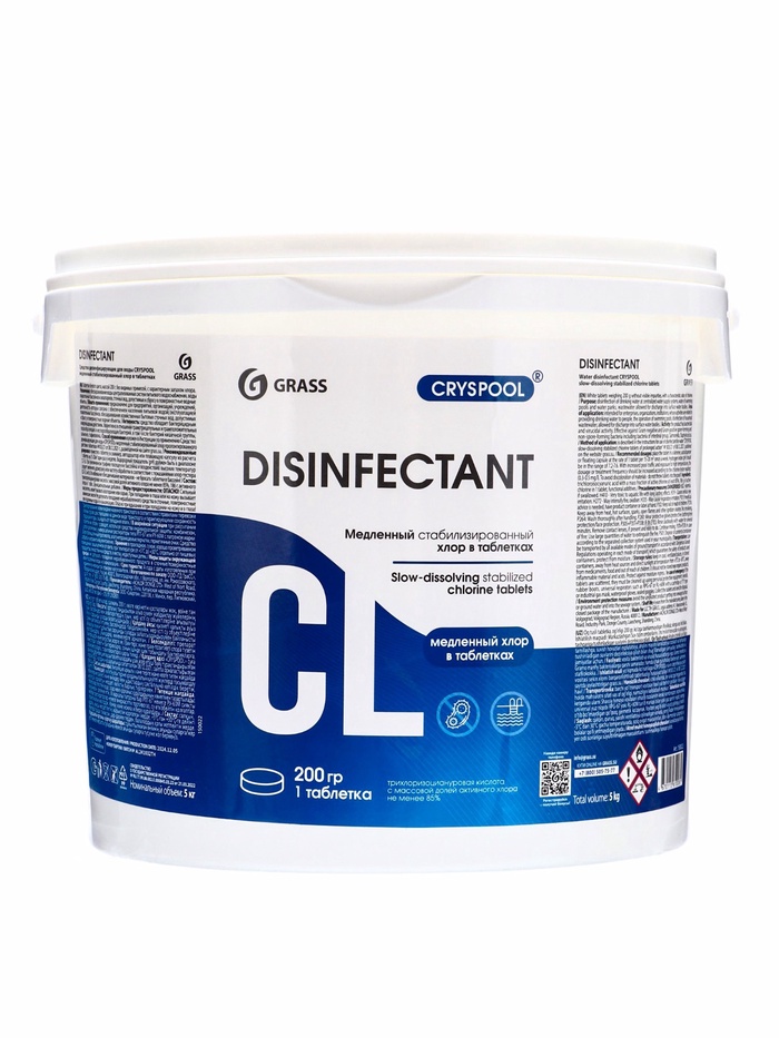 CRYSPOOL Медленный стабилизированный хлор, 5 кг — длительная дезинфекция с минимальными усилиями