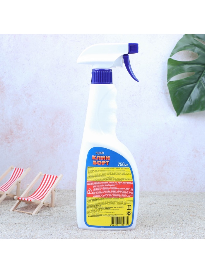 Для чистки используют неразбавленное средство, которое распыляют на загрязненную поверхность края бассейна, оставляют на 1-2 минуты и затем смывают с помощью губки. При необходимости процедура повторяется. Если очистить загрязнения с помощью средства «КЛИН БОРТ» не удается, значит, присутствуют известковые и / или металлические отложения, очистить которые можно с помощью препарата «АНТИКАЛЬЦИТ».