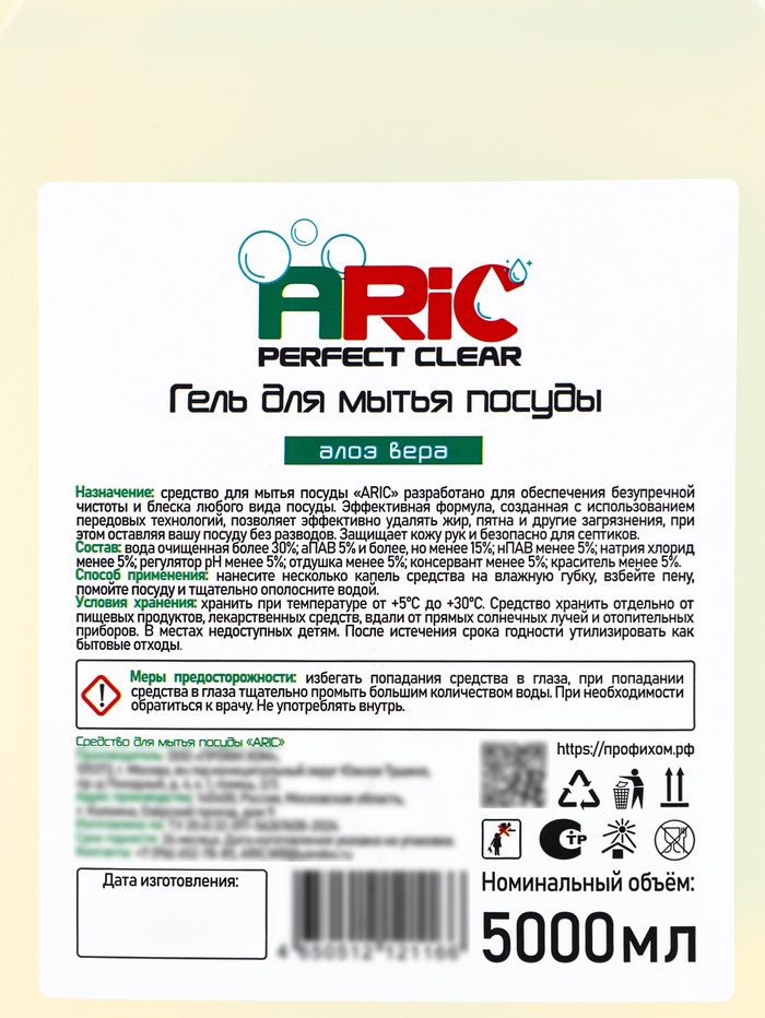 Средство для мытья посуды ARIC "Алоэ Вера" 5л