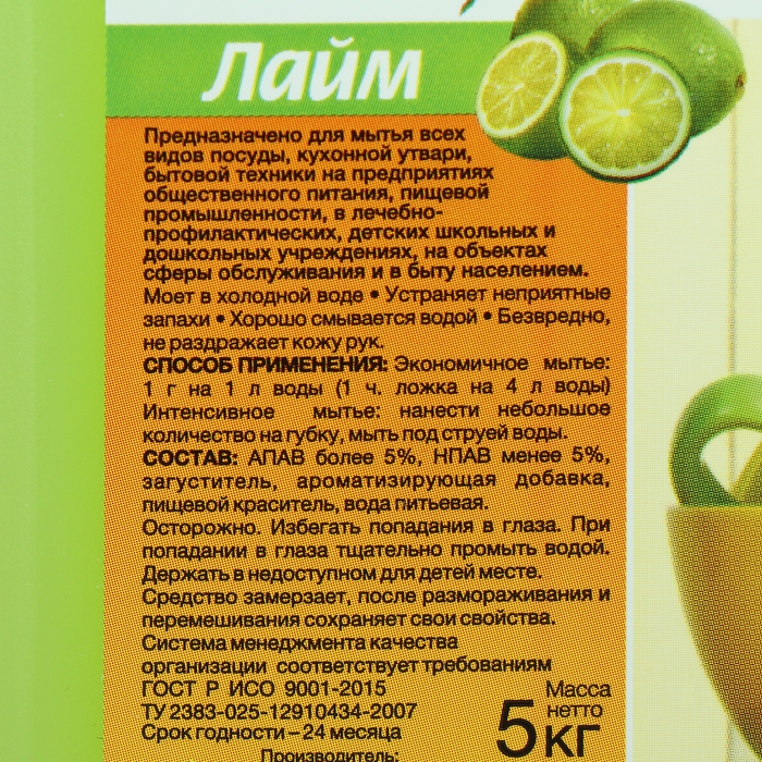 Экономичное использование: 1 грамм моющего средства на 1 литр воды.