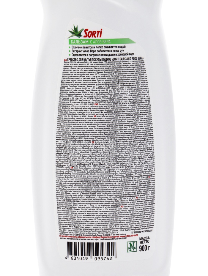 Средство для мытья посуды Sorti "Бальзам с алоэ вера", 900 гр