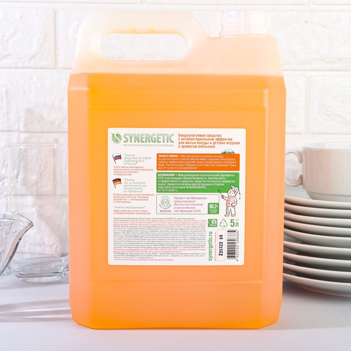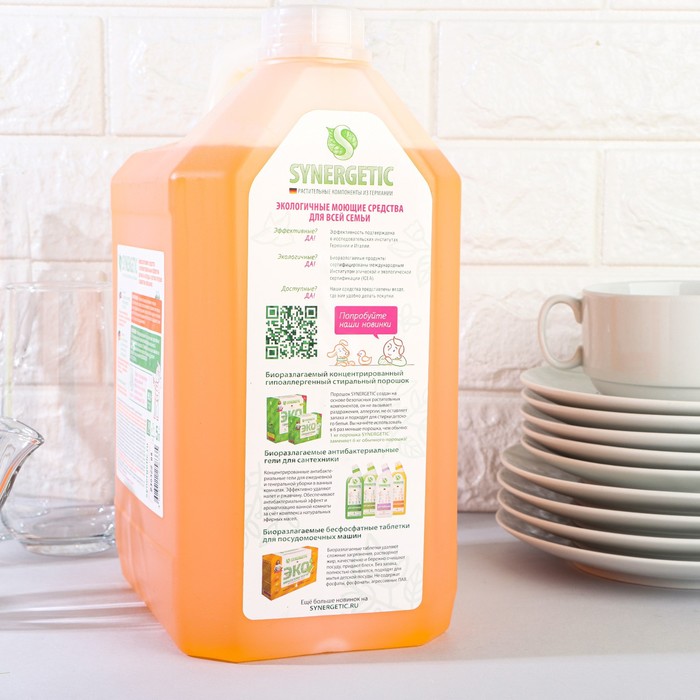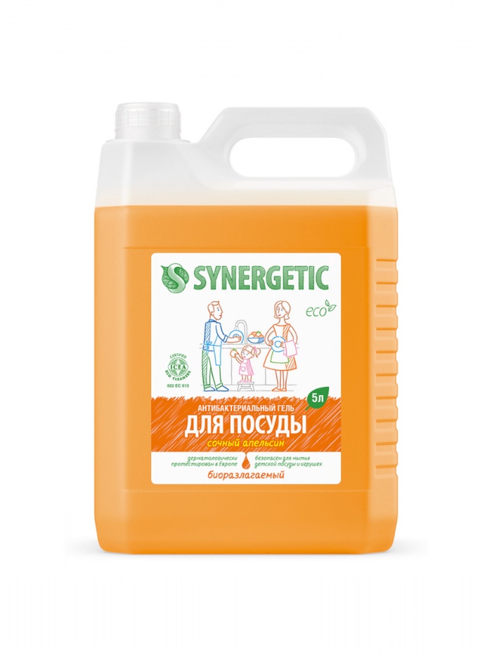Биоразлагаемый концентрированный гель для посуды с антибактериальным эффектом SYNERGETIC - это экологичное, безопасное и эффективное средство для мытья всех видов посуды, в том числе детской, кухонного инвентаря и детских игрушек от любых видов загрязнений.