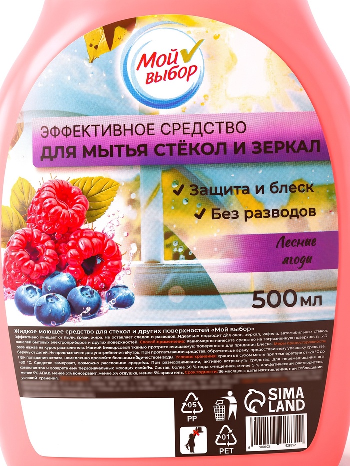 Средство для мытья стекол «Мой выбор» с ароматом «Лесные ягоды» — это чистота, сияние и лёгкое природное настроение при каждой уборке, которое делает уход за поверхностями приятным и эффективным.