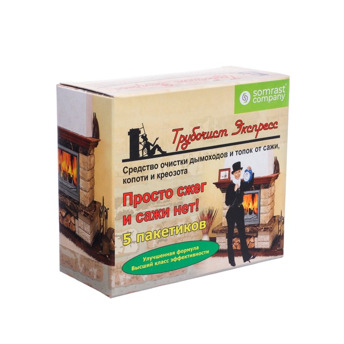 Средство для очистки дымоходов «Трубочист Экспресс» — простой и нетоксичный способ немеханической очистки от сажи, креозота и копоти для дымоходов и внутренних поверхностей топок, печей, теплообменников, каминов, работающих на твёрдом топливе. Не вызывает коррозии. Заменяет механическую очистку.