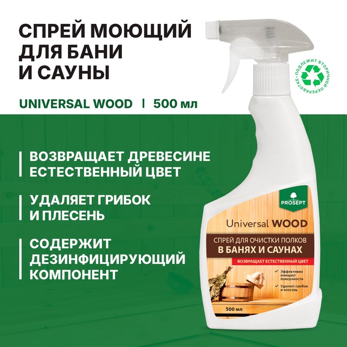 Спрей для очистки и отбеливания полков, скамеек и других деревянных поверхностей в помещениях с повышенной влажностью – банях, саунах.