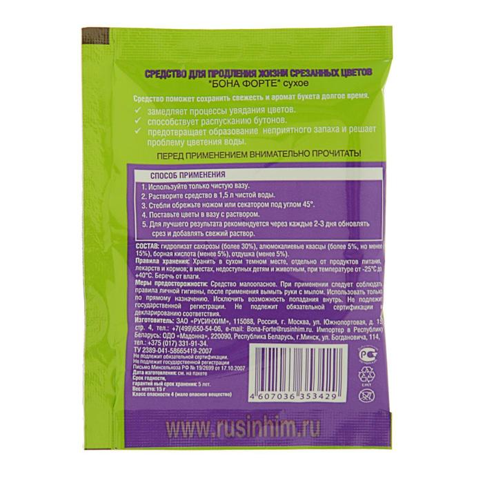- увеличивает жизнь в вазе более чем на 100% по сравнению с водой;