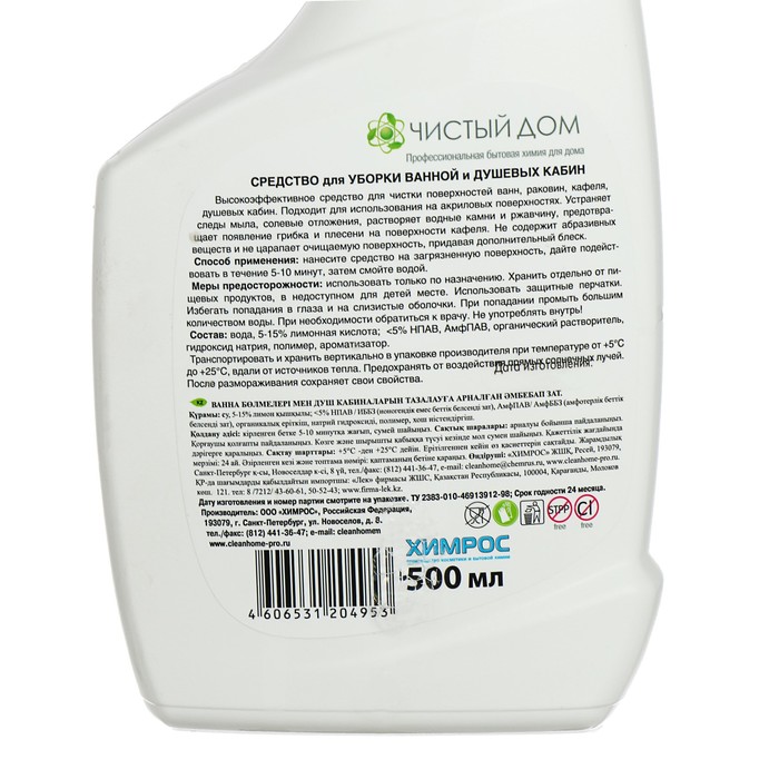 Средство для уборки ванной и душевых кабин Clean Home, 500 мл — помощник для любой хозяйки. Входящие в его состав специальные компоненты эффективно удаляют самые сложные загрязнения в туалете и ванной комнате. Средство прекрасно борется с налётом и сильной ржавчиной. Оставляет лёгкий аромат свежести.