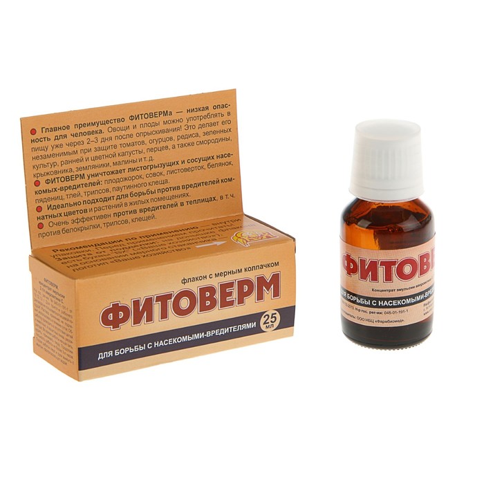 «Фитоверм» имеет широкий спектр действия: против более 20 видов насекомых вредителей, в том числе колорадского жука, капустной белянки, капустной совки, паутинного клеща, яблонной плодожорки, цветоедов, трипсов, всех видов тли. «Фитоверм» не загрязняет окружающую среду, быстро разрушаясь в воде и почве.