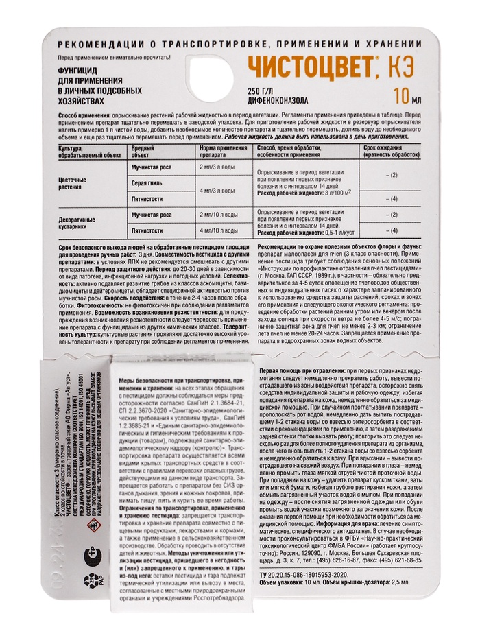 - проникает в растения через 2 часа после обработки и не смывается дождем.