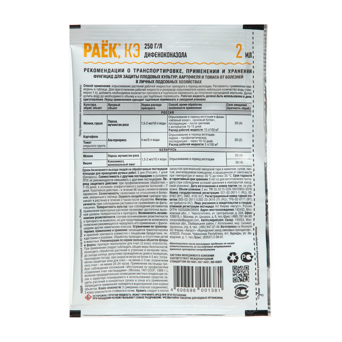 - быстро проникает в ткани растений и не смывается дождем уже через 2 часа после опрыскивания;