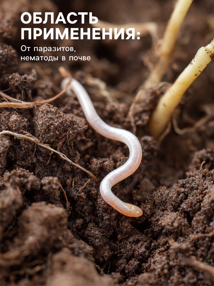 - нет срока ожидания до сбора урожая; - эффективность уничтожения нематод всех стадий в почве более 86%;