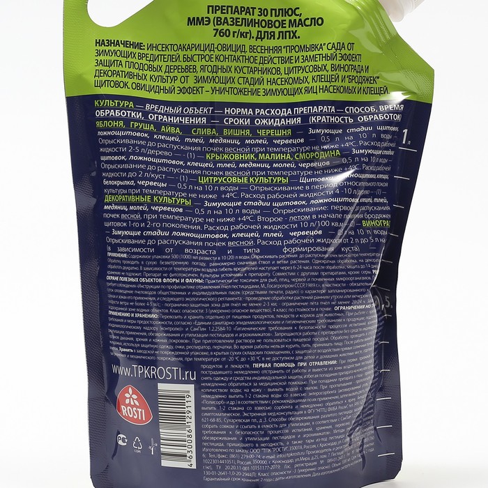 Препарат 30 Плюс относится к ряду инсектицидов обладает защитными свойствами против зимующих насекомых. В садоводстве применяется для обработки плодовых, ягодных, декоративных кустарников и деревьев, цитрусовых растений, любых сортов винограда. 30 Плюс является биологическим средством, умеренно токсичным для человека и экологически безопасным для окружающей среды.