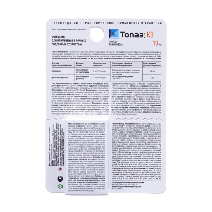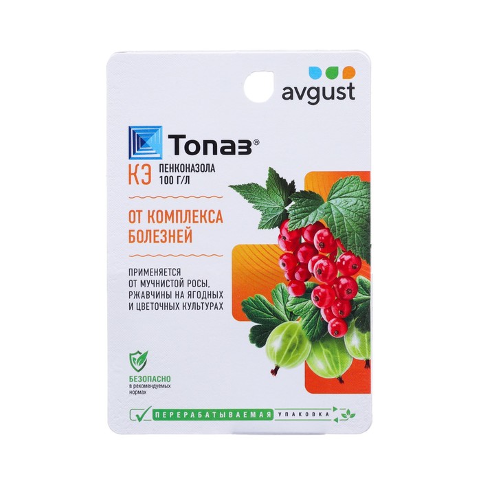 Препарат «Топаз» – фунгицид системного действия, который может использоваться для профилактики и лечения растений (цветочных культур и смородины) от мучнистой росы и ржавчины. Средство отличается высокой скоростью действия – останавливает рост мицелия уже через 2–3 часа после обработки. Оно проникает внутрь растений, за счет чего защищает не только листву и стебли, но и молодые побеги даже в неблагоприятных погодных условиях. Препарат «Топаз» обеспечивает длительный эффект на протяжении не менее 10–14 дней.