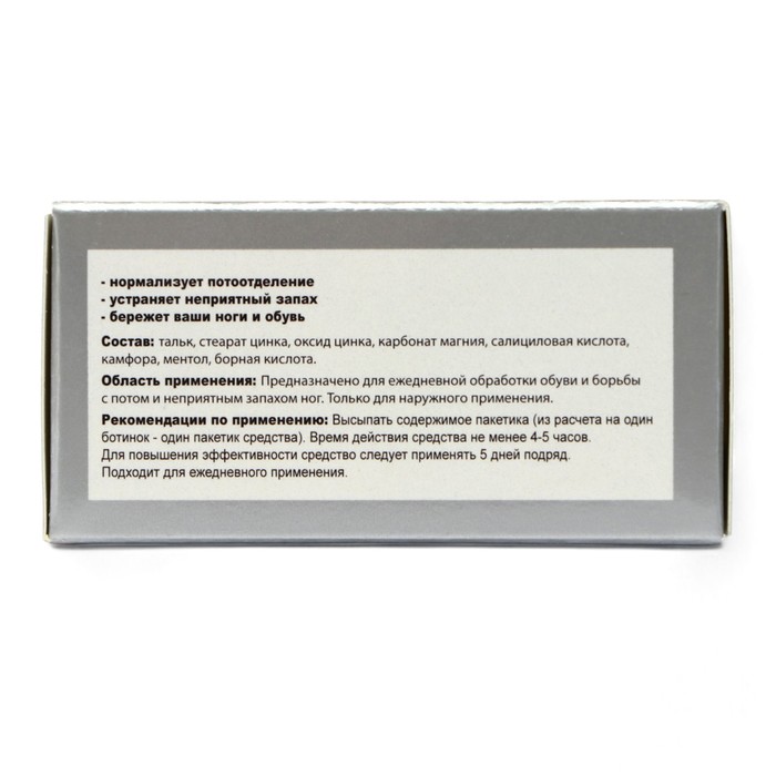 Способ применения: высыпать содержимое пакетика из расчета 1 пакетик в 1 ботинок.