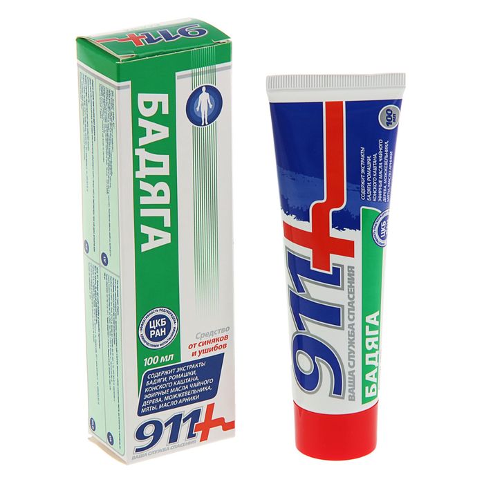 Уникальное средство торговой марки «911» разработано на основе бадяги, которая помогает от синяков и ушибов.