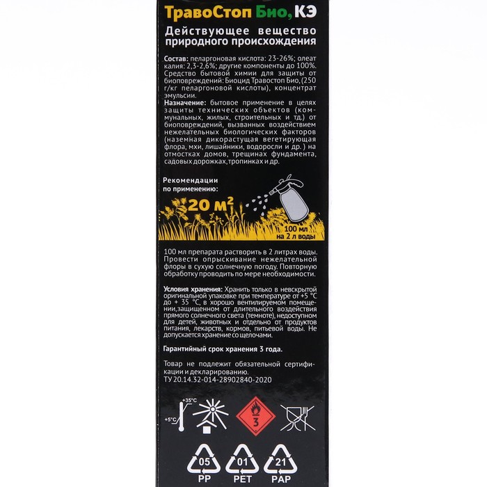 Средство от сорняков Биоцид ТравоСтоп Био КЭ – это надежный помощник в борьбе за идеальный участок без нежелательных растений. Приобретайте препарат уже сегодня и наслаждайтесь красивым и ухоженным садом или огородом!