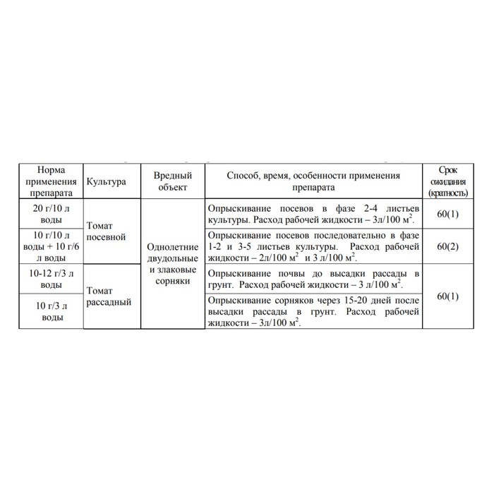 - воздействует как при обработке почвы, так и при опрыскивании сорняков в посадках в фазе до 3-5 листьев культуры;
