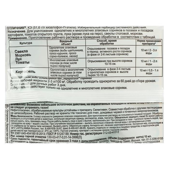 - Средство эффективно только против однолетних и многолетних злаковых сорняков.