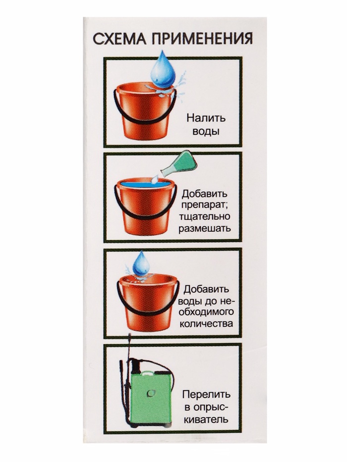 - Удобная дозировка: Флакона 10 мл достаточно для приготовления 5-10 литров рабочего раствора. Идеальный объём для обработки небольшого участка.
