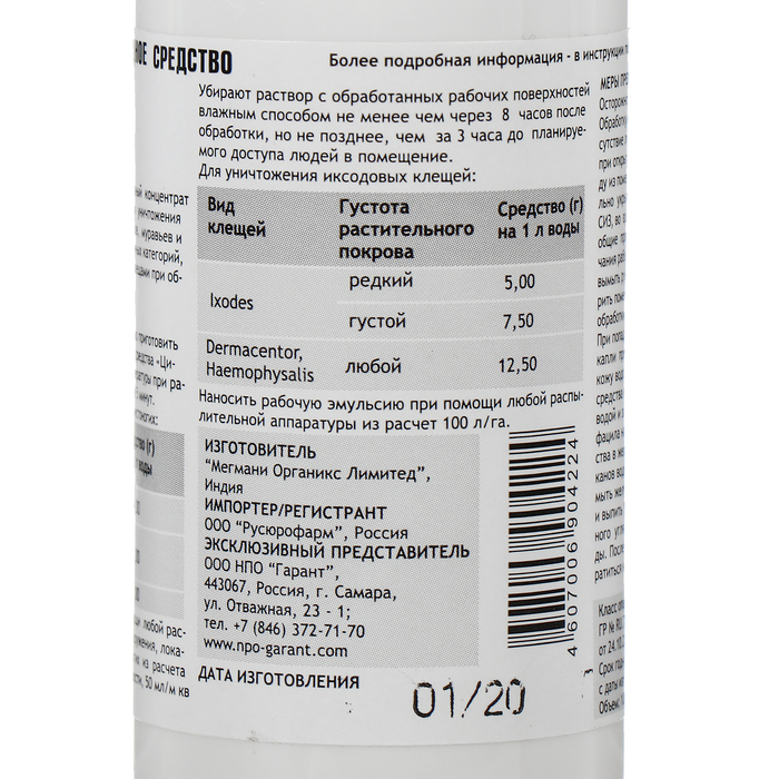 Концентрат Циперметрин 25 имеет высокую концентрацию действующего вещества, что позволяет использовать его в минимальных дозах. Это делает его экономичным и удобным в использовании. Кроме того, благодаря специальной форме выпуска – флакону ПЭТ – его можно легко хранить и транспортировать.