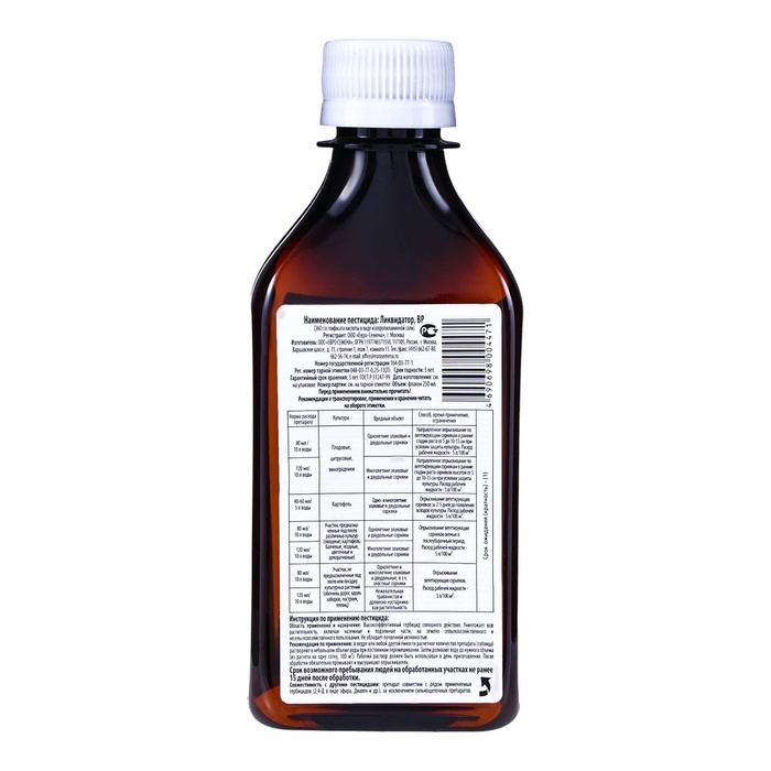 Способ применения: опрыскивать вегетирующие сорняки в ранние стадии роста от 5 до 10-15см при условии защиты культуры. Расход - 5л/100м2.