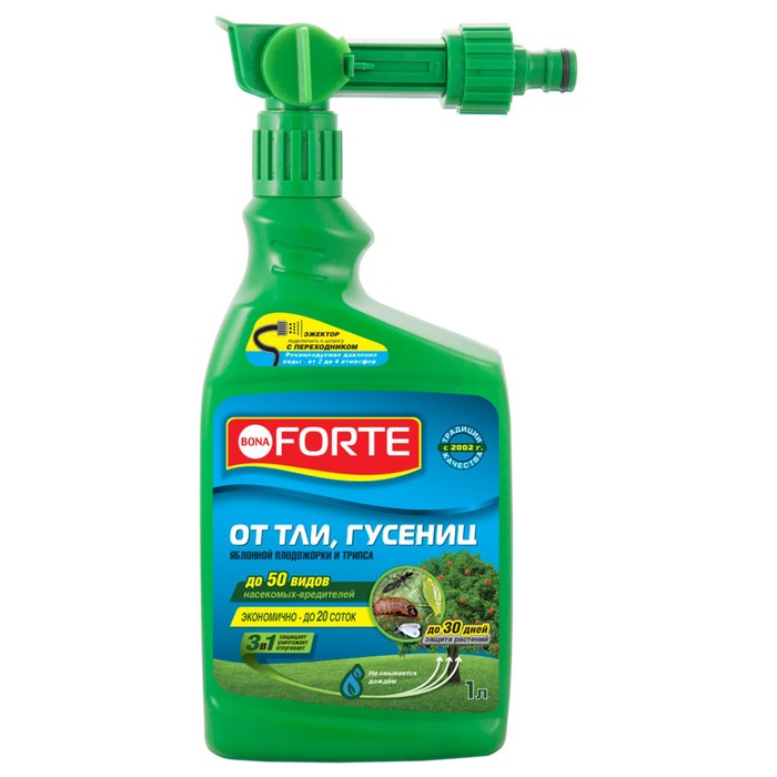 Можно использовать: от тли, гусениц, белокрылки, трипса, яблонной плодожорки. А также эффективно против таких насекомых - вредителей садовых растений, как: листовертка, жуки (в том числе колорадский), все виды мух, крестоцветные блошки, листовые пилильщики, долгоносики, цветоед, паутинный клещ.