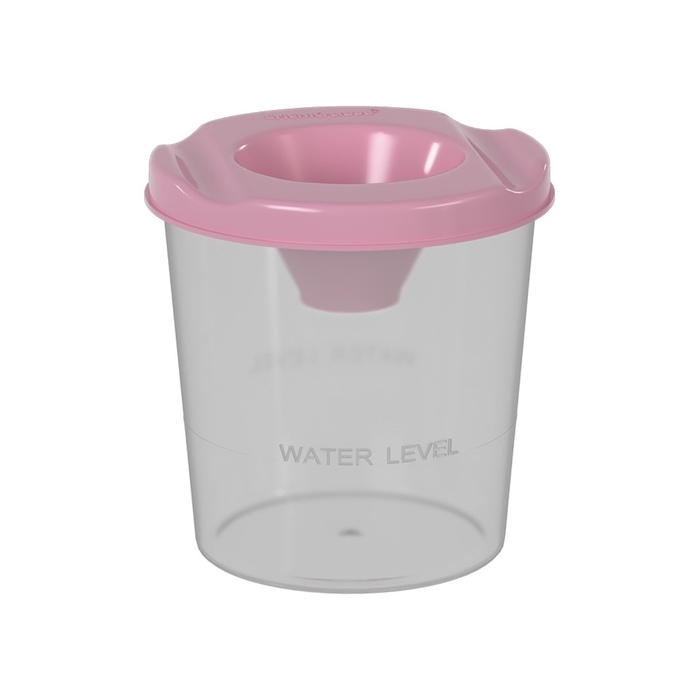 Стакан-непроливайка объемом 200 мл, указатель уровня жидкости 64 мл до уровня, при котором вода не вытекает из баночки если она опрокинется. Размеры стакана: высота 80 мм, диаметр крышки 73 мм.