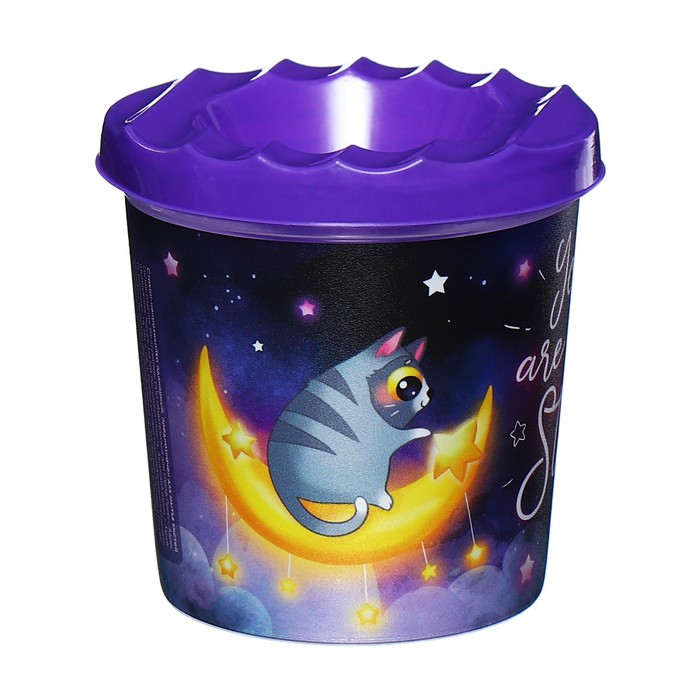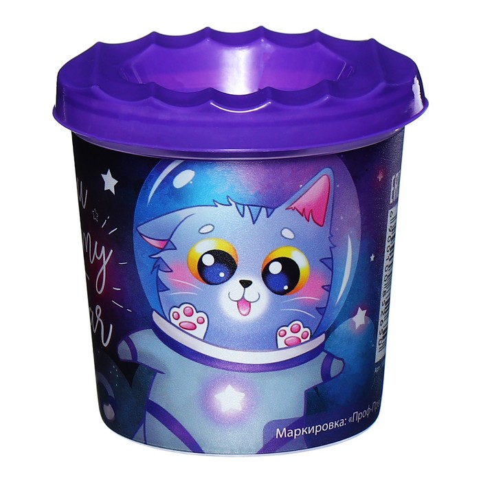 Специальная форма крышки стакана исключает возможность вытекания воды. Линия на прозрачном корпусе указывает на максимально возможный уровень наполнения. Выполнен из прочного пластика. Имеются специальные углубления на крышке для размещения кисточек. Полный объем - 210 мл. Объем до уровня - 75 мл. Оригинальный дизайн сделает процесс рисования еще более увлекательным