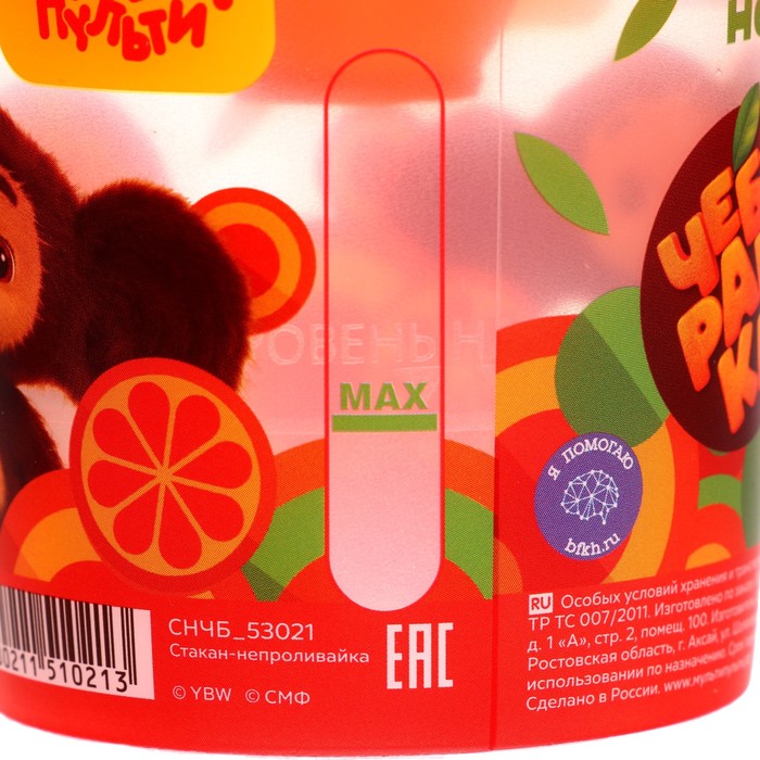 Стакан-непроливайка Мульти-Пульти серии "Чебурашка" предназначен для использования воды при рисовании. На корпусе стакана выполнена яркая печать с любимым героем Чебурашкой, что обязательно привлечет внимание детей. Специальная форма крышки в виде воронки не даст воде вылиться из стакана, даже при его опрокидывании, при условии наполнения на уровне 50 мл.Идеален для сохранения рабочего места ребенка в чистоте при рисовании красками. Объем стакана оптимально подобран для обхвата детской рукой.Устойчиво располагается на рабочей поверхности. Изготовлен из экологически чистого и прочного полипропилена.