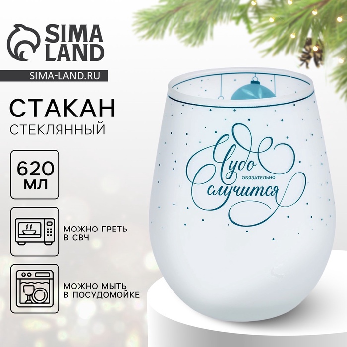 Стакан новогодний стеклянный «Чудо обязательно случится», 620 мл