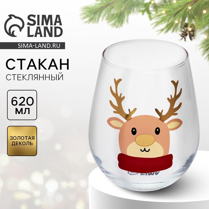 Стакан новогодний стеклянный «Оленёнок», 620 мл, золотая деколь