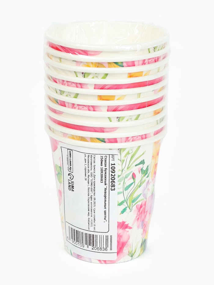Стакан одноразовый бумажный «Акварельные цветы», 250 мл