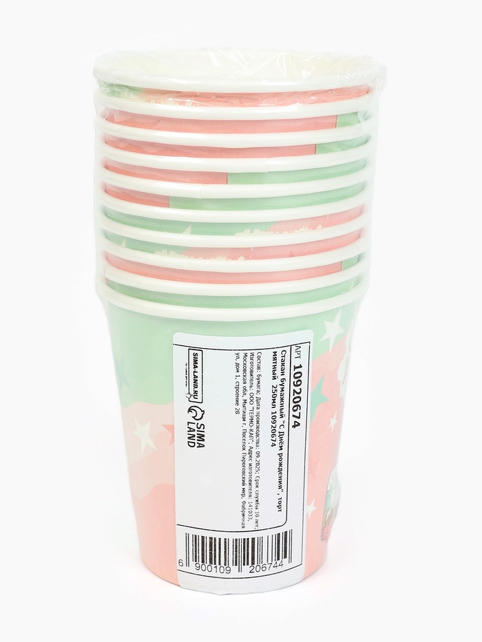 Стакан одноразовый бумажный «С Днём рождения», 250 мл