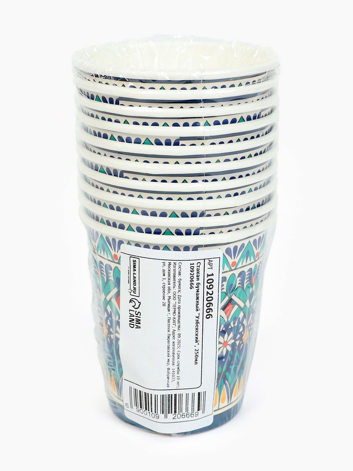 Стакан одноразовый бумажный «Узбекская», 250 мл