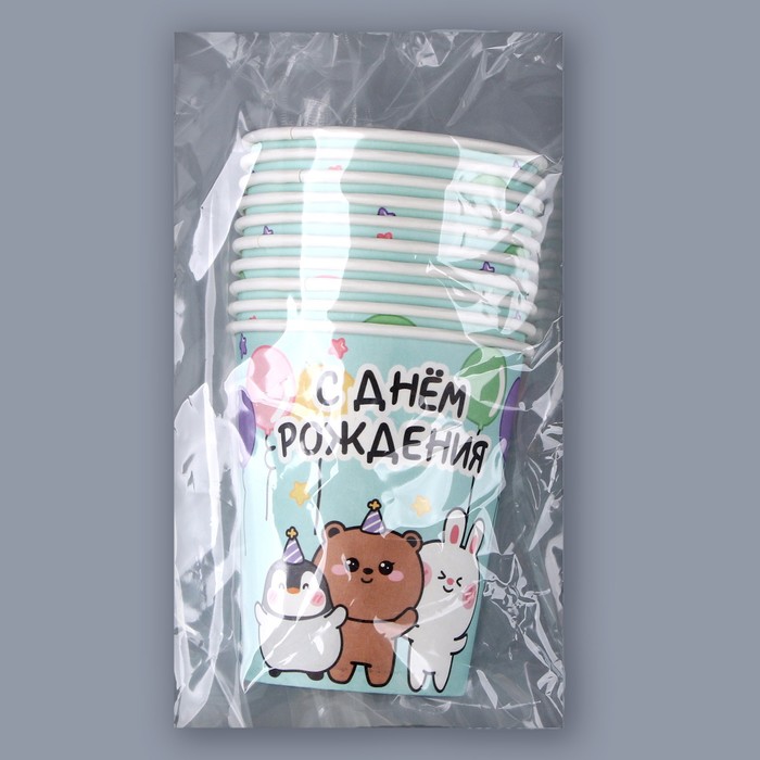 Стакан одноразовый бумажный "Зверята", 250мл