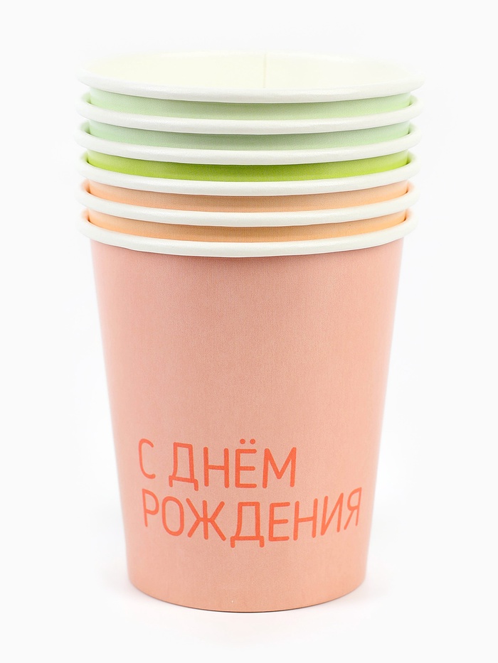 Стаканы (250 мл) С Днем Рождения, Классика, Ассорти, 6 шт.
