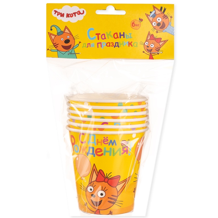 Стаканы "Три Кота. Веселый День Рождения" 6 шт.