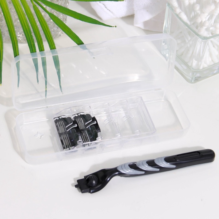 Бритвенный станок с тремя лезвиями и увлажняющей полоской, в наборе 2 сменных кассеты лезвий.