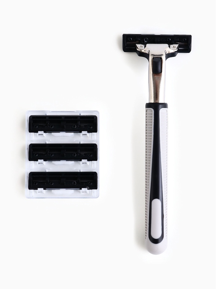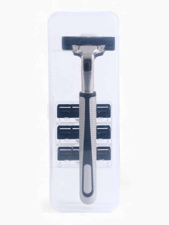 Станок для бритья оснащён четырьмя сменными кассетами, которые обеспечивают гладкое и чистое бритьё. Каждая кассета имеет пять острых лезвий из нержавеющей стали, которые аккуратно срезают волоски, не вызывая раздражения кожи.