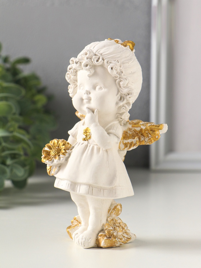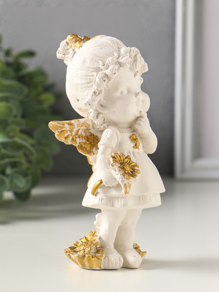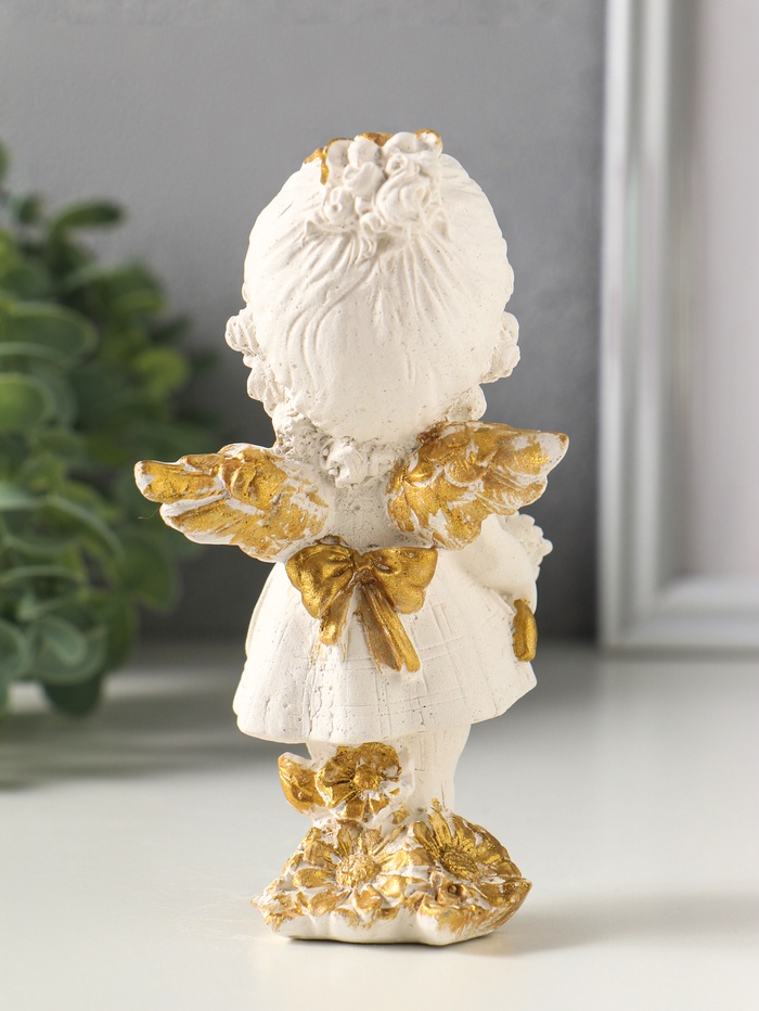 Статуэтка "Ангел с цветком" размер 14х5 см, цвет белый с золотом