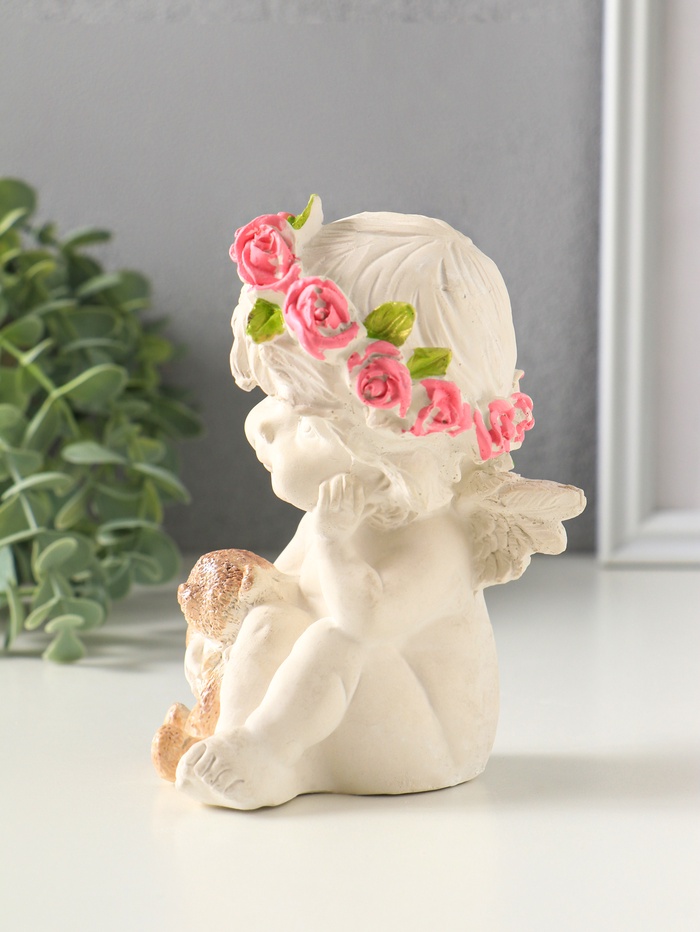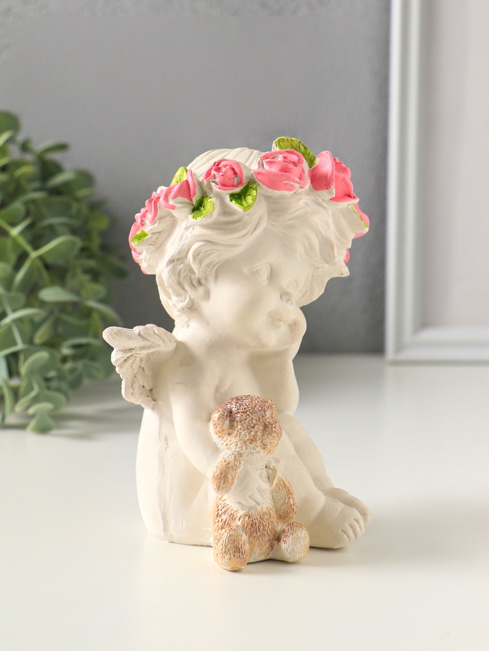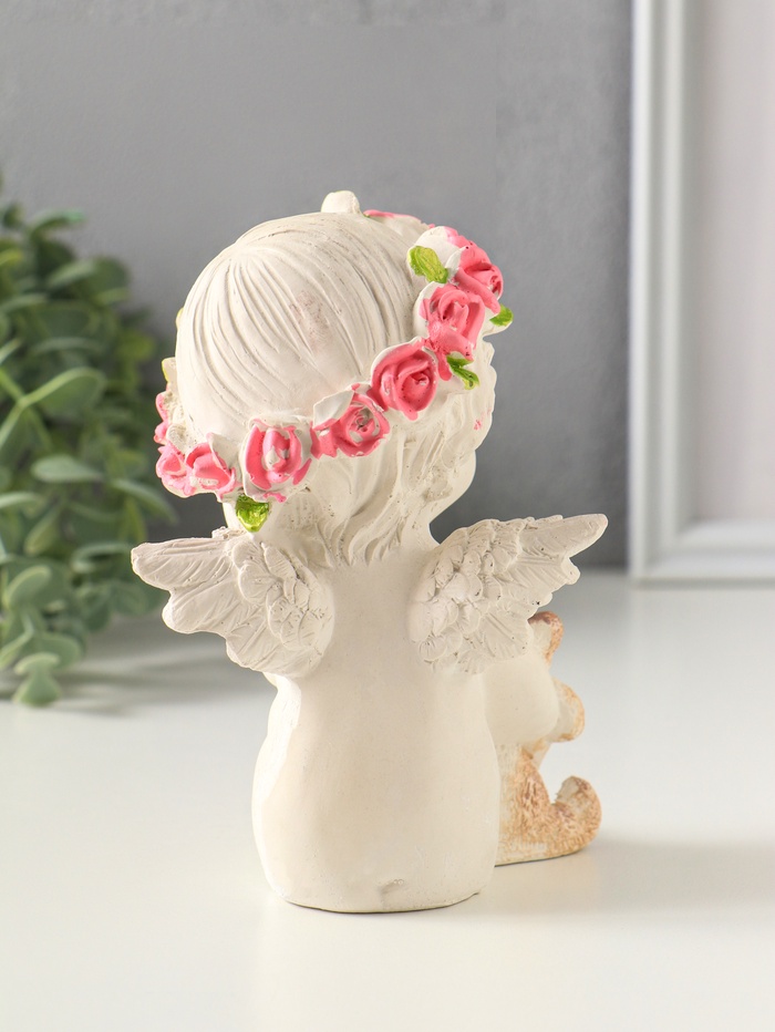 Статуэтка "Ангел с мишкой" 14х8 см, цвет белый с позолотой